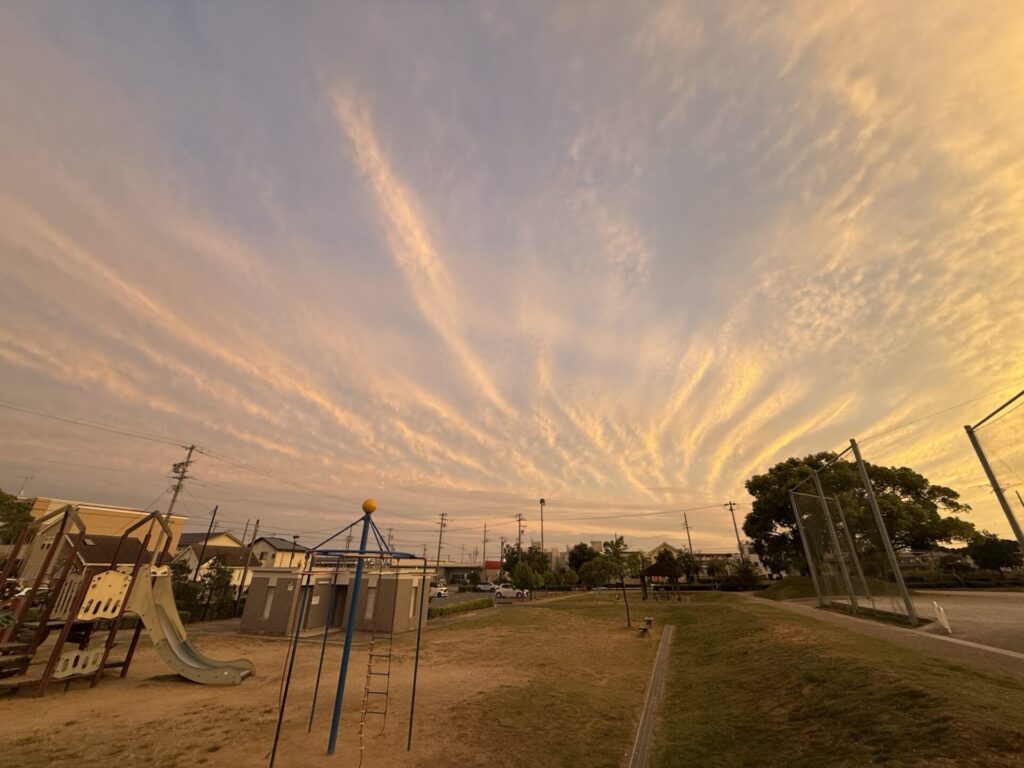 不思議な雲の茜空でした。