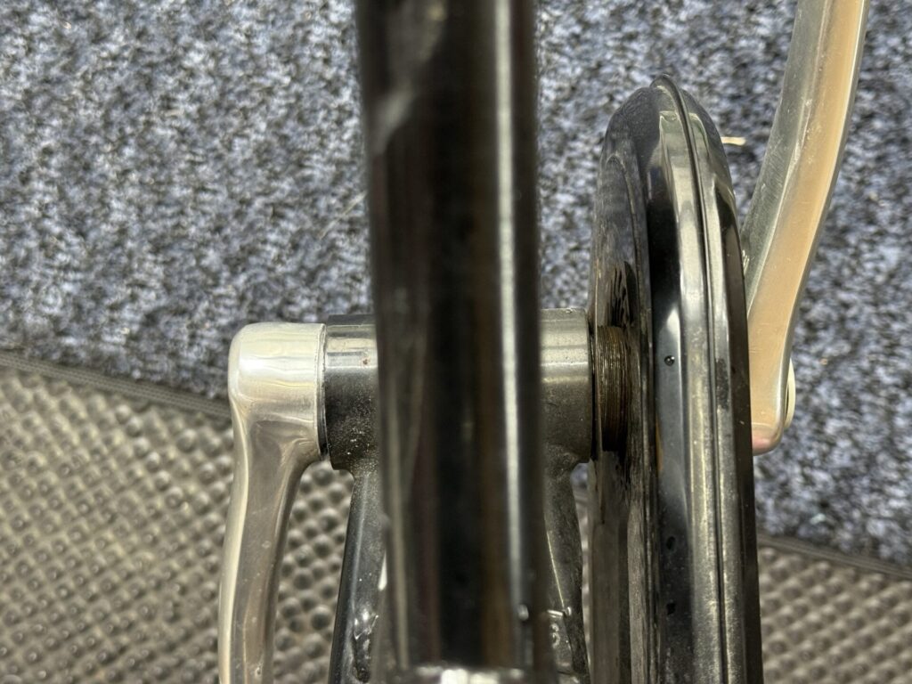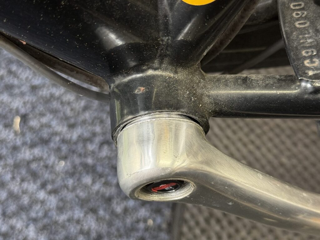 なんで最初の写真、左側はフレームとクランクが当たってしまってるんです。